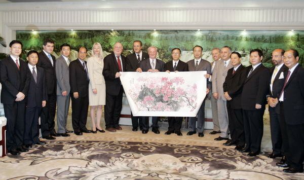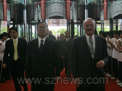 George E. Killian, President of the International University Sports Federation (FISU) is warmly welcomed by Students in Shenzhen.