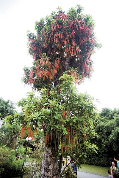 A Yurui tree in the Lotus Hill Park in Futian District blossoms Monday afternoon, attracting many passers-by to take picture with it. It was rare to see the tree blossom in the day time as it, which blossoms once a year, usually does at a night in September. The blossom lasts for three to fi ve hours. The tree is listed as a rare species and less than 10 Yurui tree are known to exist in Shenzhen. SD-Agencies