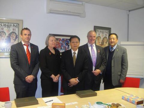On the morning of November 22, local time, the Shenzhen Universiade promotion delegation, headed by Vice President of Federation of University Sports of China (FUSC) Yang Liguo and Deputy Secretary-General of Shenzhen Municipal Government Huang Guoqiang, called on University Sports Federation of Britain and had a conversazione with them. President of University Sports Federation of Britain and Vice President of University of Birmingham Mr. Ed Smith, CEO Ms. Karen Rosaria and Director of the International Project Mr. Neal Rogers attended the conversazione.