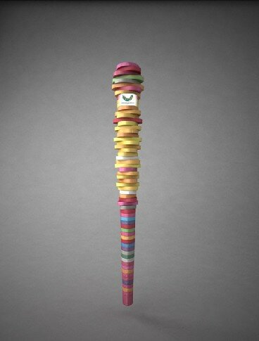 火炬的创意亮点:椭圆形、多彩切片可以任意旋转出各种造型,是一支可与火炬手互动、造型百变的火炬。每一位火炬手都可以根据自己的想象,调节出自己喜爱的火炬形状。这就意味着:每一位火炬手和他的火炬都是独一无二的。