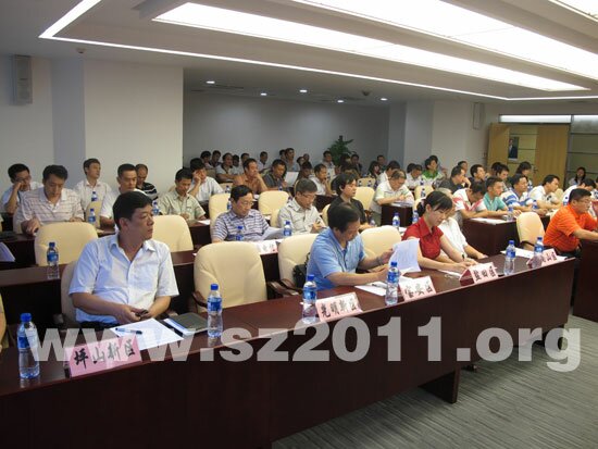 深圳市发改委、财政委、规划国土委、教育局、监察局、海洋局、住房和建设局、水务局、政府投资审计专业局、城管局、公安消防局和市工务署、市政府采购中心、中国电信、供电局、各区发改、教育、体育部门和龙岗大运执行办、体育新城办、龙岗规划国土分局、各场馆业主单位以及大运会执委会督察室、大运会执行局场馆部、竞赛部、后勤保障部、大运村管理部、信息技术部、安全保卫部等部门相关负责人共同就当前大运会场馆建设中存在的问题展开讨论。