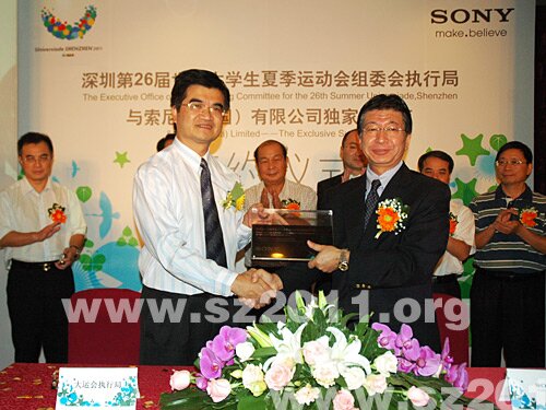 大运会执委会副主席、大运会执行局局长梁道行和索尼中国专业系统集团副总裁井手司治共同启动了签约仪式,大运会执行局专职副局长赵广华和井手司治分别在仪式上致辞。赵广华表示,索尼成为2011年深圳第26届世界大运会电视转播制作设备类领域的独家供应商,具有十分重要的意义。相信凭借索尼尖端的高清产品和技术优势,以及深厚的服务经验,定能为此次大运会保驾护航,使所有参赛者和广大观众欣然共享精彩盛会。