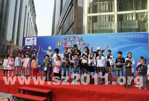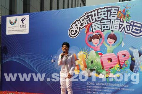 大运官网讯 由“深圳市民讲外语”活动组委会办公室主办,大运会执行局协办的“深圳市民讲外语”进社区——“快乐讲外语 童声唱大运”首站活动28日下午在南山区拉开帷幕,30名少年儿童以自编自导的“电信情景剧”、合唱《Start Here》等精彩的才艺表演,表达了他们对大运的期待,对深圳的祝福。