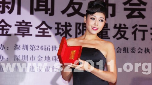 大运官网讯 由深圳第26届世界大学生夏季运动会组委会执行局授权金地珠宝研发生产,面向全球限量发行的深圳2011大运会“大运金”系列千足金章金条12月1日在深圳举行了隆重的上市推介会。