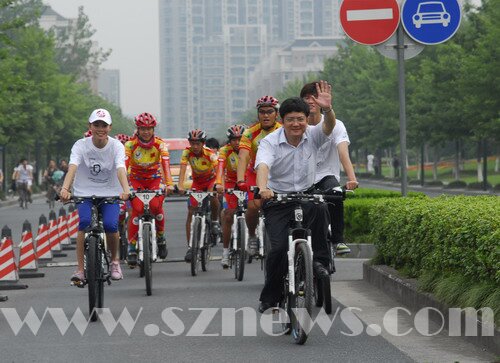 活动现场,浙大的学子们在校领导、大运局领导的带领下在长20.11米的大运条幅前签名合影,为2011年的深圳大运会送上了一份自己的祝福。在浙大宣传活动最后,郑强教授鸣枪宣布发车,并骑着自行车带领大运文化骑行队全体队员环游校园。