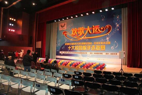 此次大运会征歌进北大的活动得到了北大团委和学生会的大力支持和协助:为了让更多的同学了解大运会、参与大运会征歌,学生会安排我活动与本校十佳歌手大赛这个在同学中认可度极高的赛事结合,在前期十多场初赛中大力宣传大运会征歌;为了让最优秀的选手代表北大参加我活动,优中选优,学生会特别安排本校十佳歌手大赛复赛所决出的21名选手参加今晚的专场比赛;为了让选手的嗓音完美的体现在评委面前,学生会特别协调场地,将比赛安排在音响条件极好的百年讲堂多功能厅举办。
