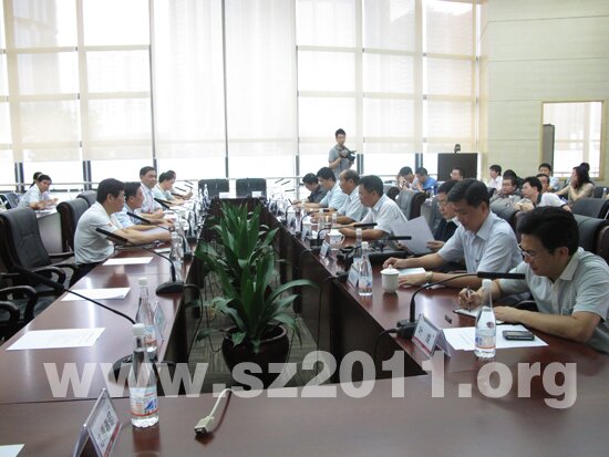 随后,考察团一行与广州亚组委进行了座谈,广州市副市长许瑞生同志出席并主持了座谈会。会上,许瑞生副市长表示对深圳大运会需要广州市亚组委协助的事将给予大力支持,提出广州、深圳两地可以在资源、经验共享方面进一步合作,达到双赢的效果。道行同志对广州亚组委的关心和支持表示感谢,并强调广州亚运会的筹办工作为大运会提供了很好的借鉴经验。随后,双方就场馆运行、团队建设、设备配置、交通物流等进行了深入的交流和探讨。