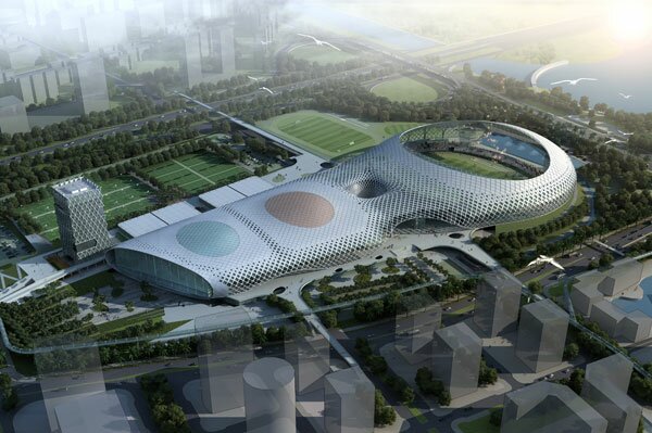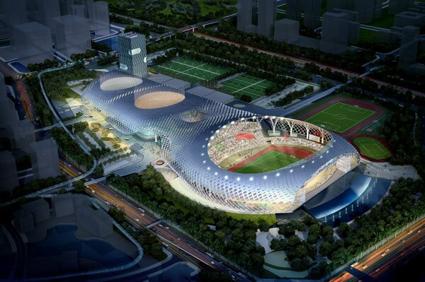 将体育场、体育馆、游泳馆一体化设计,并同时与商业设施、运动员接待中心复合,相对于独立设置的单体建筑,更能有效、灵活的互相利用各种配套设施。