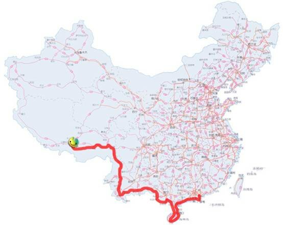 途途地区:深圳—香港—澳门—海口—三亚—北海—凭祥—元阳—西双版纳—大理—丽江——香格里拉—八一—泽当—拉萨