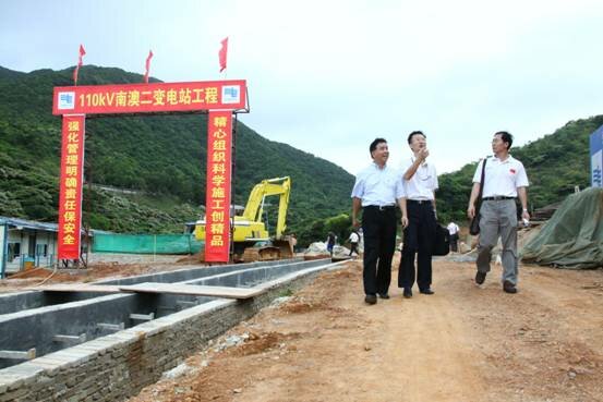 后勤保障部一行实地查看了变电站施工进度,听取了南方电网项目负责人对工程的建设规模及施工进度的介绍。据了解,位于龙岗中心城的220KV交椅变电站工程是深圳2011世界大运会重点配套项目,今年4月份开工以来,本工程已完成开关楼主体结构封顶、 220KV构支架基础柱浇筑、电容器场地桩检测等工作。另外,工程配套线路宏图至灵芝解口进交椅线路工程已完成50%的基础浇制。110KV南澳二变电站工程,是由深圳市深供供电服务有限公司承建的,建筑面积2519.21㎡的变电站。目前此工程挖孔桩工程已完成并验收合格,准备进行钢筋笼制作安装浇捣混凝土。边坡支护工程已完成,边坡框架梁已经完成约50%。