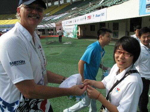 9月23日,来自深圳大学的志愿者阚淑芬遭遇了一件自己手足无措的事情。也许是被小阚的微笑和周到体贴的志愿服务打动,本次射箭锦标赛监督和仲裁委员会官员、韩国人游秉金在当天离开深圳银湖旅游中心住宿地时,愣是按照国际惯例给小阚的手中塞了两百元人民币,以示谢意。