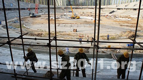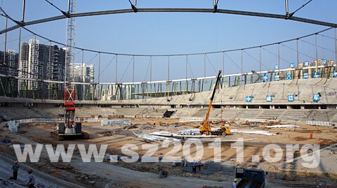 宝安体育场采用德国GMP公司的“竹林”索膜结构方案,索张拉工作已完成